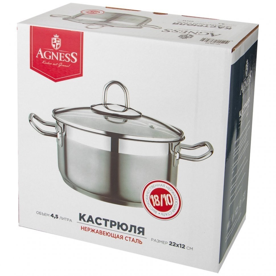 Кастрюля agness professional высококачественная нерж сталь 18/10, 22x12 см 4,5 л Agness (936-303)