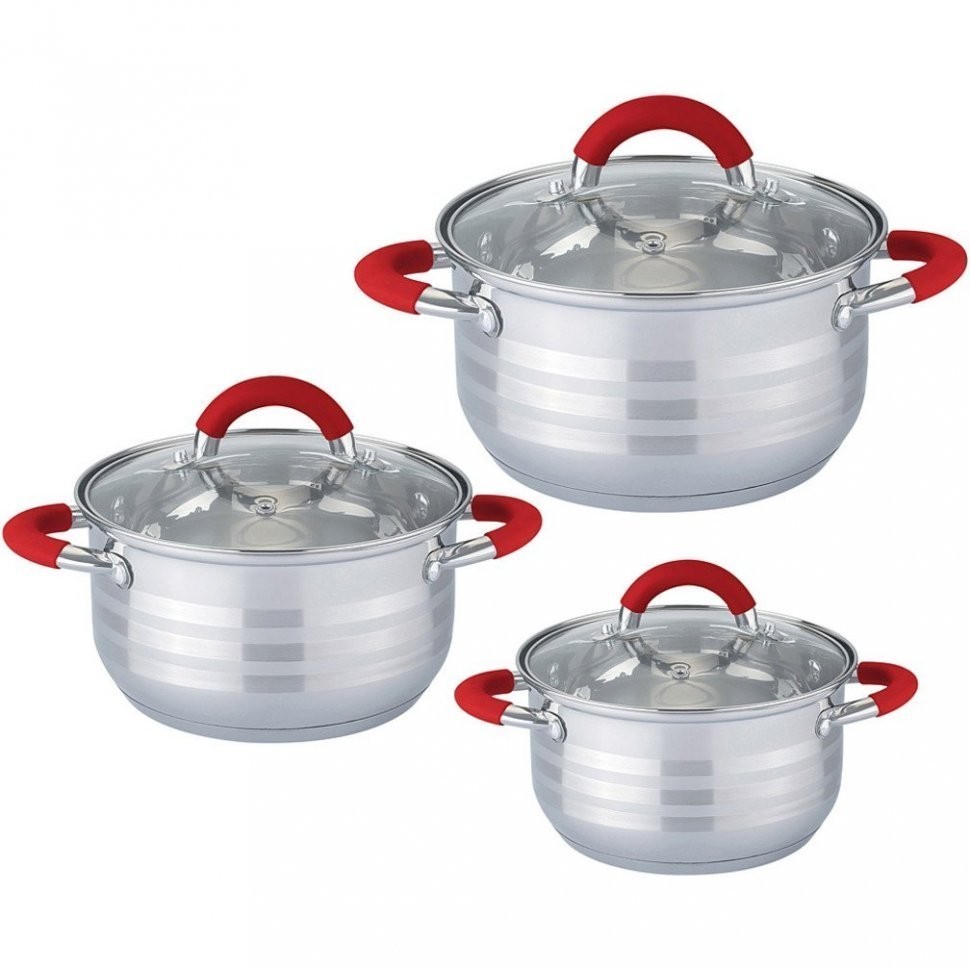 Набор кастрюль agness, 6пр.1,8/2,8/3,7 л, иа.16/18/20см, нерж.сталь со стекл. крышками,силикон.ручки Agness (937-230)
