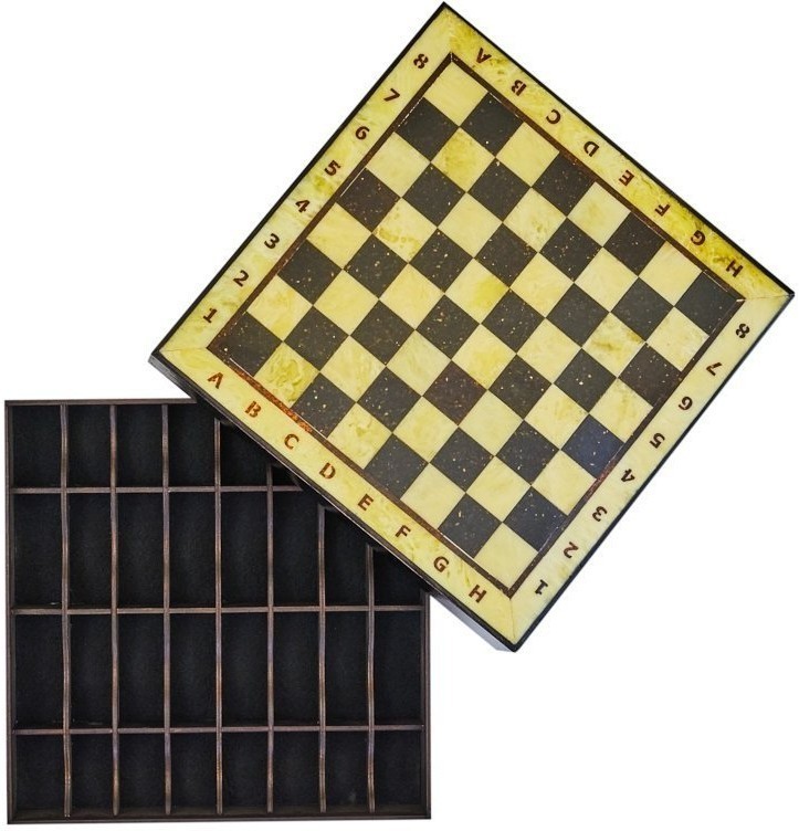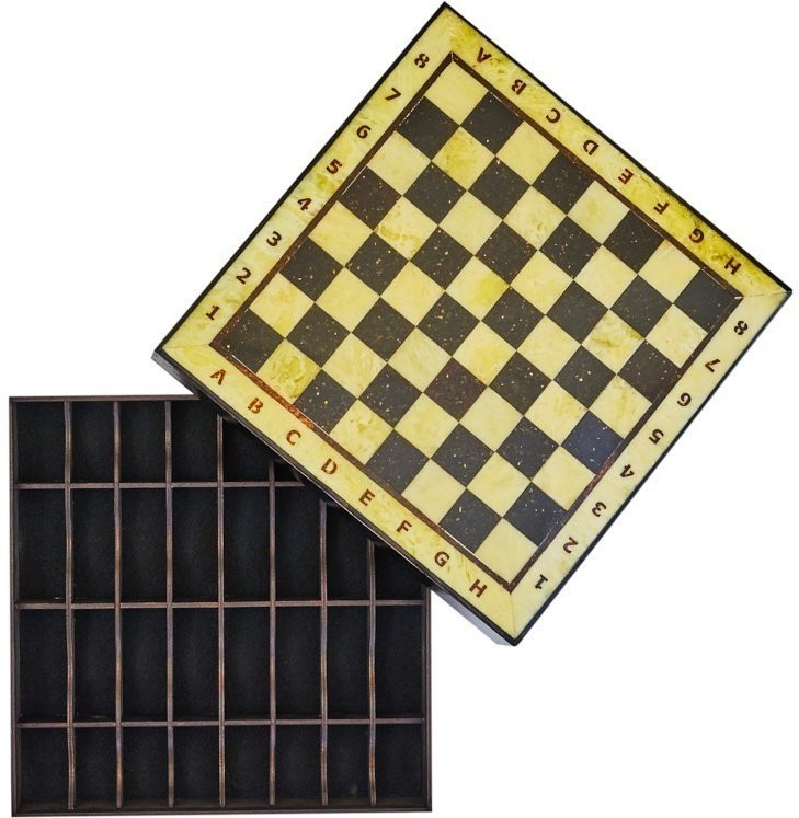 Шахматный ларец из янтаря с доской малый (дуб) 25*25 (30842)