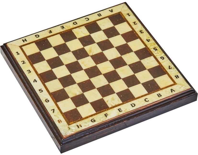 Шахматный ларец из янтаря с доской малый (дуб) 27*27 (30845)