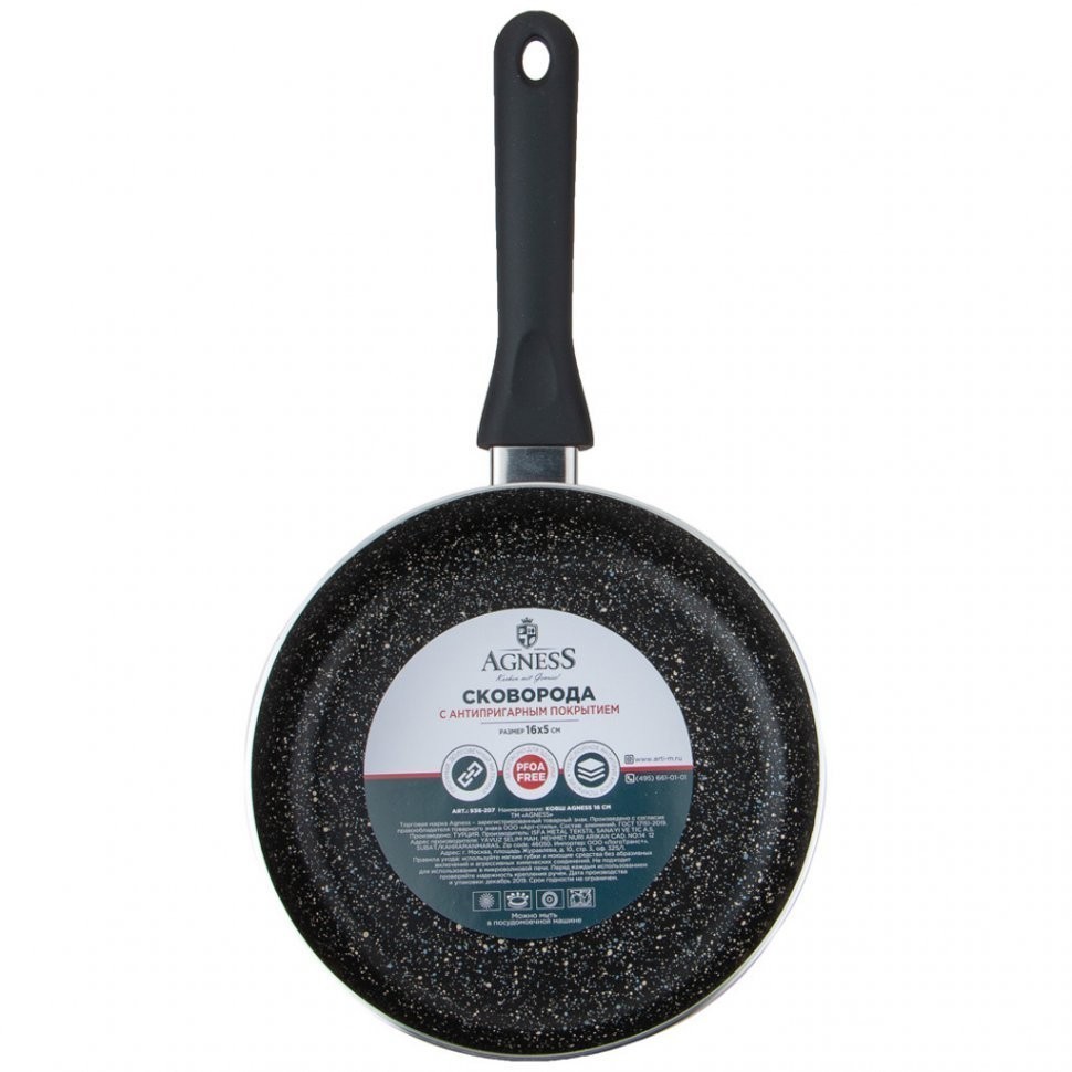 Сковорода agness  16*5 см антиприг. мраморное  покрытие, ручка soft touch, без уп. Agness (936-208)