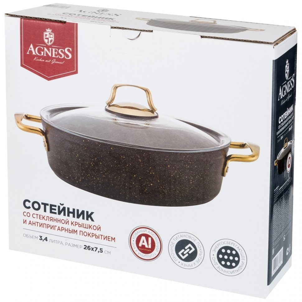 Сотейник agness премиум "черное золото" 26x7,5 см 3.4 л антипригарное покрытие, индукционное дно Agness (936-216)