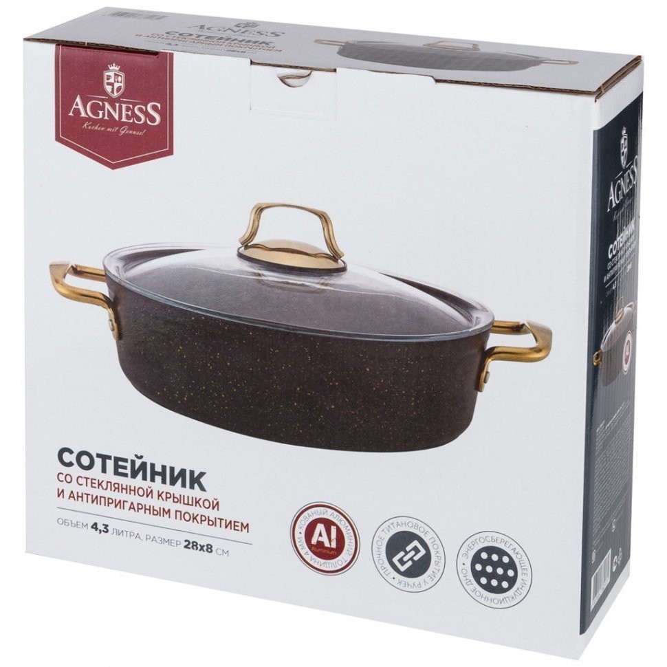 Сотейник agness премиум "черное золото" 28x08 см 4.3 л антипригарное покрытие, индукционное дно Agness (936-217)